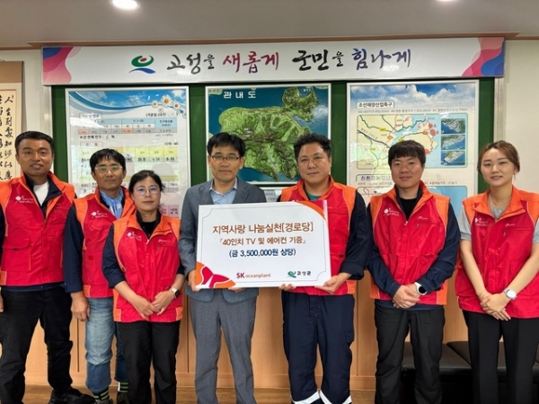 SK오션플랜트 띠앗봉사단(변화추진실장 이충구)은 지난 25일 동해면사무소를 방문해 경로당 노후 물품 교체지원 기탁식을 진행했다고 밝혔다.
