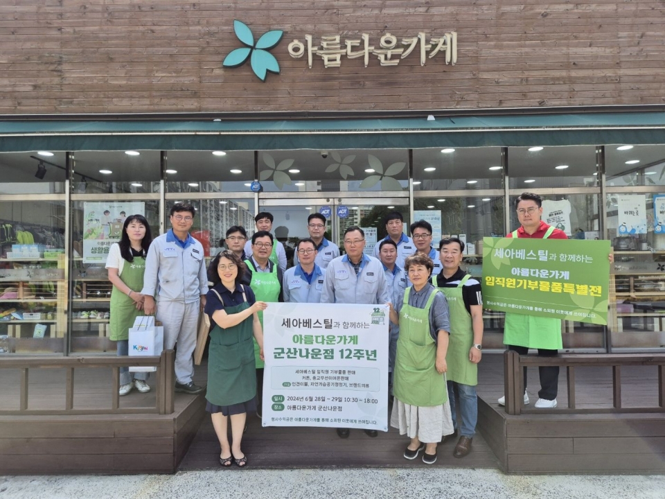 세아베스틸(대표이사 김철희, 신상호)이 비영리 공익법인인 아름다운가게와 ‘아름다운 하루’ 나눔 바자회를 진행했다.