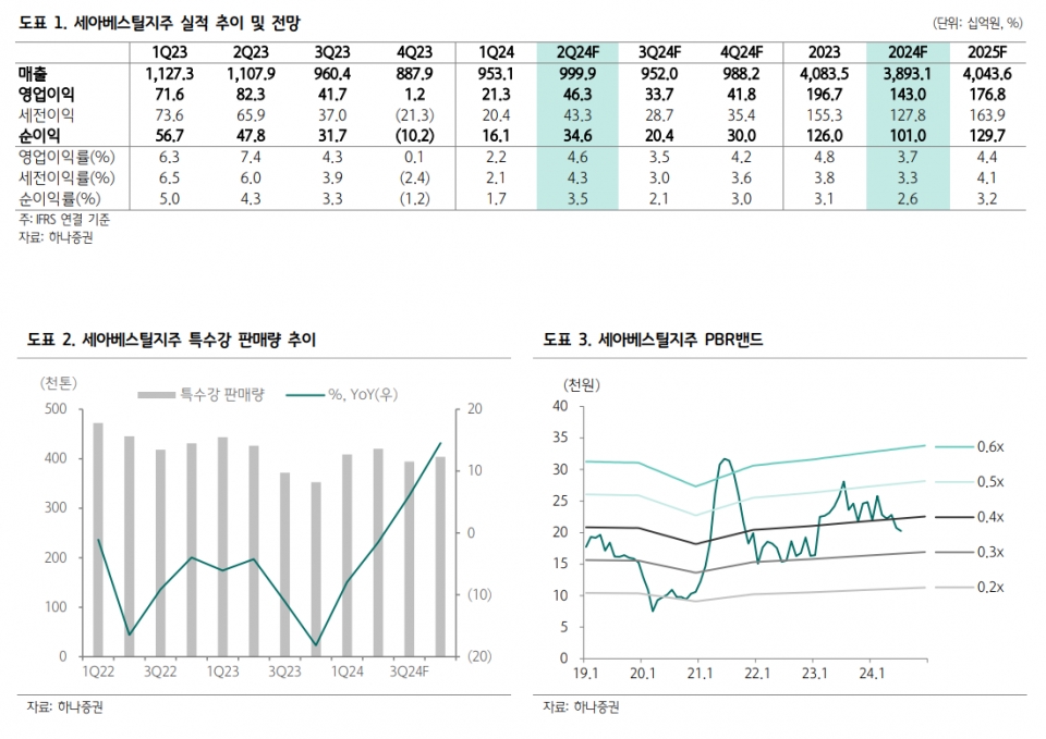 하나증권 박성봉 연구원, 세아베스틸지주 2분기 매출·영업익 성장 전망