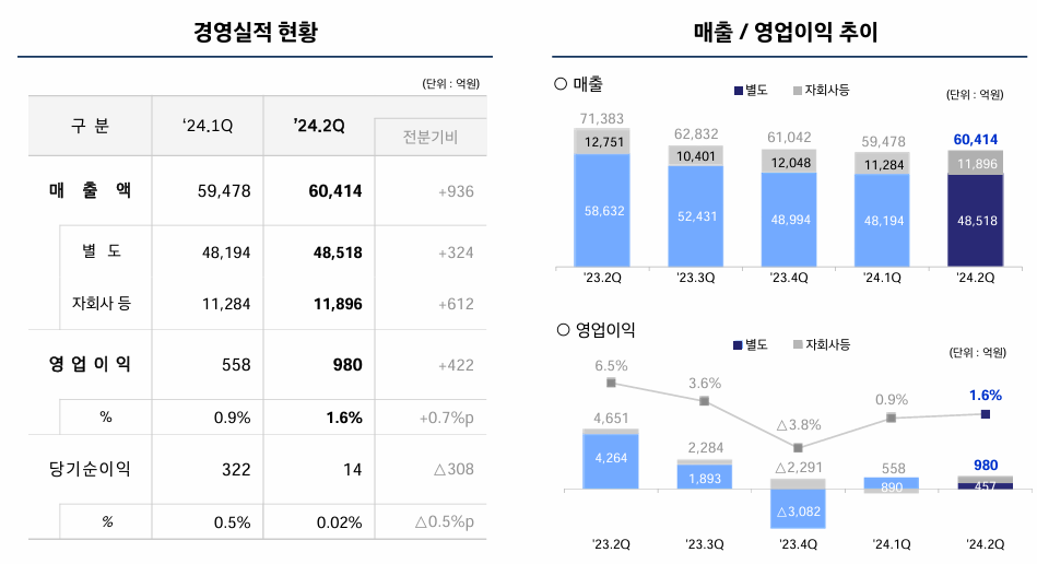 연결 매출 6조414억, 영업益 980억 …원가 하락, 자회사 실적 개선