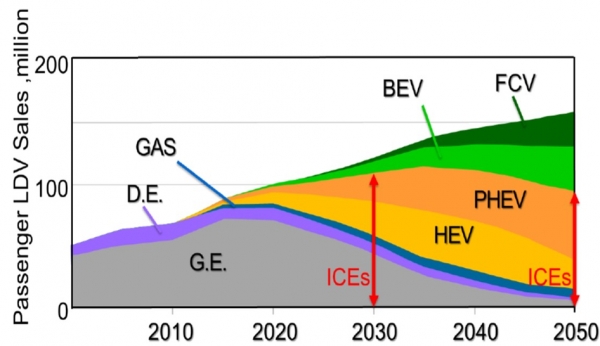 미래차는 전기구동차동차(BEV, FCV)만을 의미하는 것이 아니고 하이브리드(HEV), 플러그드하이브리드(PHEV), 신재생에너지(Renew Energy) 구동차등 친환경을 위한 여러 가지 동력원의 자동차가 공존하는 시대를 의미한다고 보는 것이 합리적이다. 즉 여러 가지 구동방식의 자동차들이 LCA감축의 경쟁을 진행하면서 진화 해 나가고 있고 순수 전기구동 자동차(BEV,FCV)외 자동차들은 상당기간 최소 전체 자동차 시장의 60%~70%이상의 점유율을 유지할 것이며 이러한 자동차들은 결국 파워트레인 시스템을 사용하는 차량으로 유지 될 것으로 예상된다.