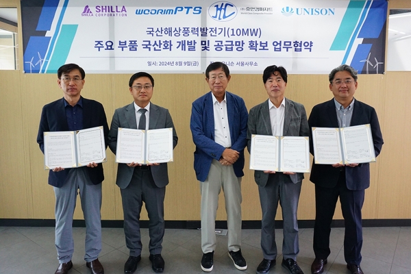 풍력발전 전문기업 유니슨은 신라정밀, 우림피티에스, 휴먼컴퍼지트와 ‘국산해상풍력발전기 주요 부품 국산화 개발 및 공급망 확보’에 관한 업무협약을 체결했다고 9일 밝혔다.