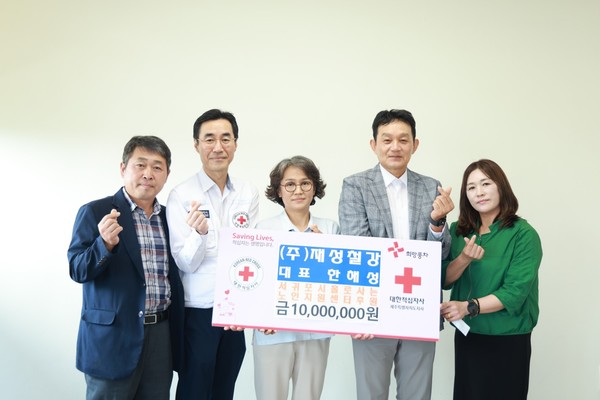 재성철강(대표이사 한해성)은 19일 서귀포지역 홀로 사는 어르신들을 위한 성금 1,000만원을 대한 적십자사 제주특별자치도지사에 전달했다.