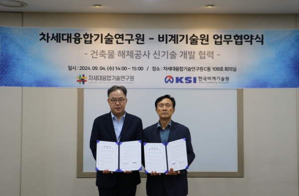 한국비계기술원(이하 비계기술원)은 차세대융합기술연구원(이하 융기원)과 건축물 해체공사 안전성 확보를 위한 업무협약을 체결했다.