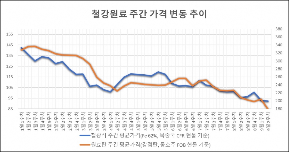 키워드 #철광석 #원료탄 #강점탄 이사무엘 기자 smlee@snmnews.com 다른 기사 보기 관련기사 (주간시장동향-후판) 시황 부진 극복할 수 있나? (주간시장동향-열연강판) 커지는 시황 악화 우려 화인텍, 적십자 씀씀이가 바른기업 캠페인 동참 저작권자 © 철강금속신문 무단전재 및 재배포 금지