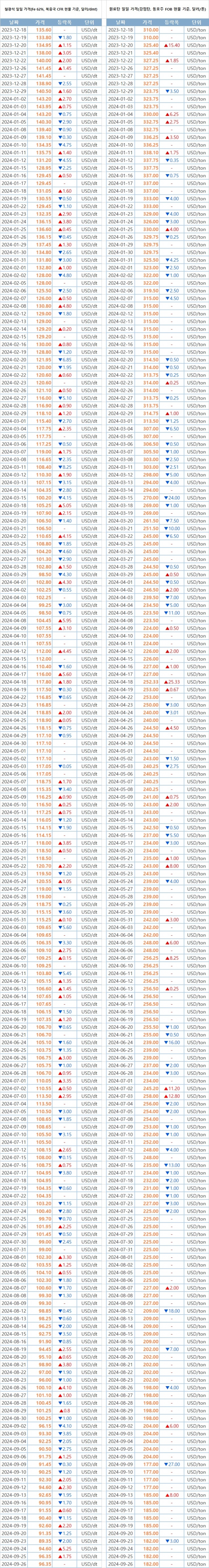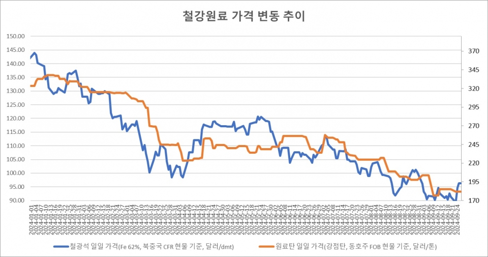 [표] 일일 철강원료 가격 동향 (9월 26일)