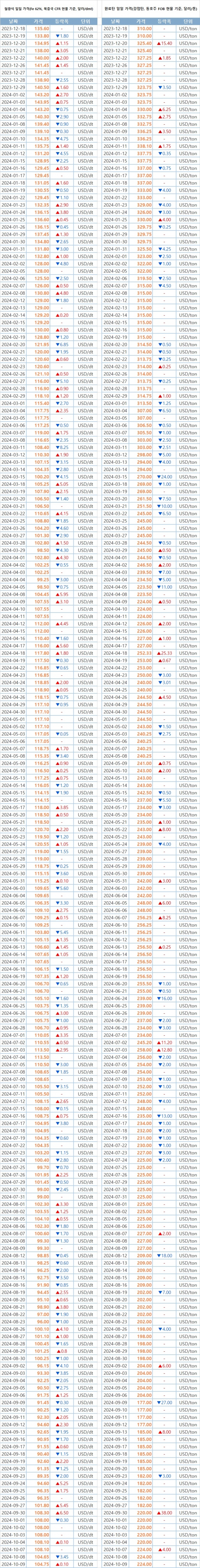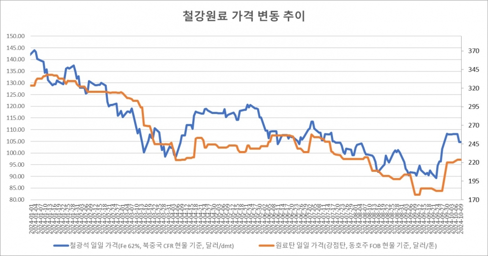 [표] 일일 철강원료 가격 동향 (10월 9일)