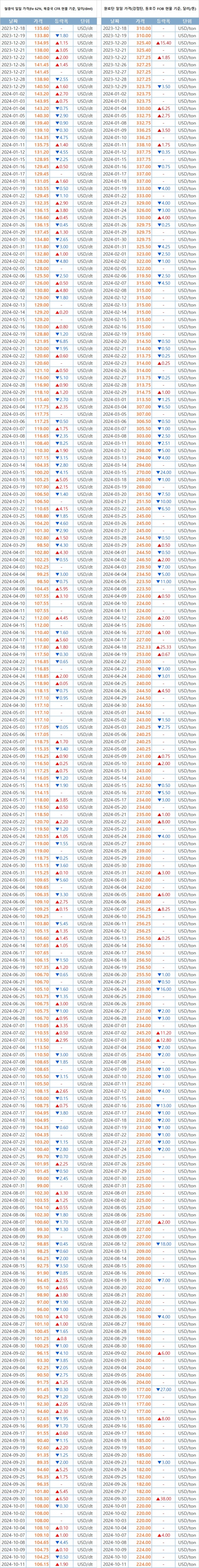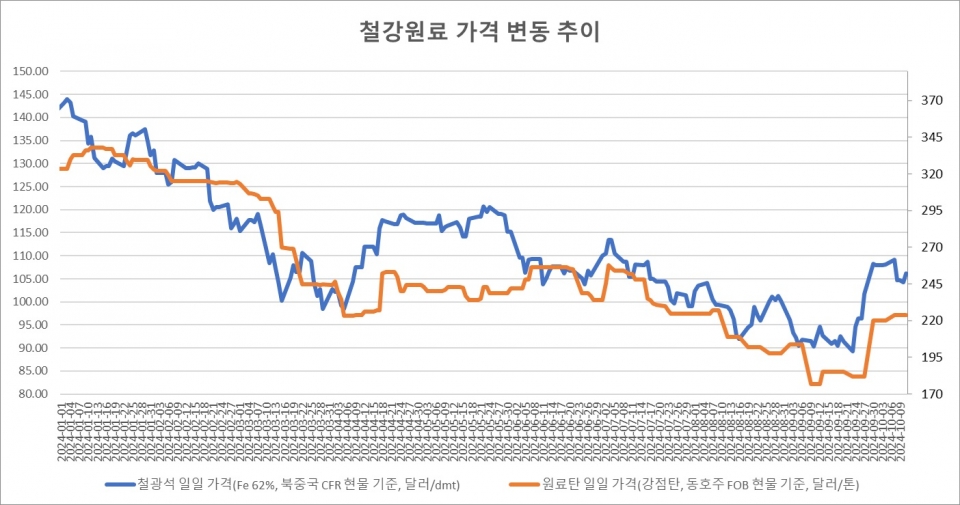 [표] 일일 철강원료 가격 동향 (10월 11일)