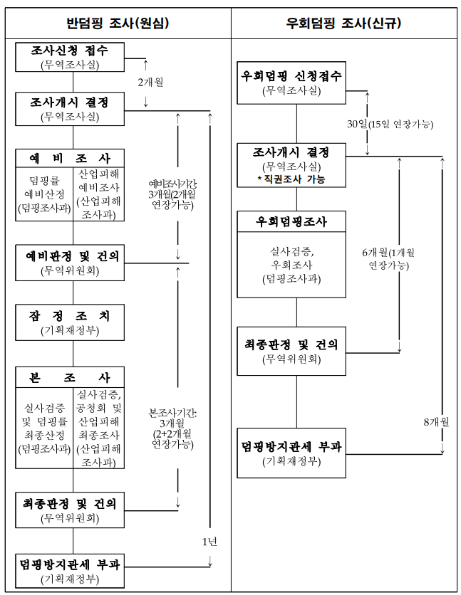 또한, 미국·유럽연합(EU)·호주·인도 등 해외사례를 참고하되 신속한 우회덤핑 조사를 위해 기존 덤핑조사(원심) 신청에 비해 작성사항을 간소화한 우회덤핑 조사신청서 초안을 공개하고 기업, 협·단체, 대리인의 의견을 수렴했다.