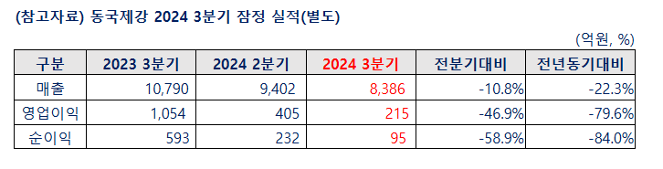 동국제강이 2024년 3분기 잠정 실적을 공시했다.