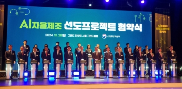 시는 이날 그랜드 하얏트 서울에서 열린 ‘AI 자율 제조 선도프로젝트 협약식’에 참석해 참여 기업 및 기관과 AI 자율 제조 협력을 위한 업무협약도 체결했다. ▲AI 자율 제조 선도프로젝트의 추진 및 지원 ▲성공 모델 발굴과 확산 ▲AI 자율 제조와 연계한 지역산업 육성 ▲AI 자율 제조 추진 및 확산에 관계 기관이 힘을 모으기로 했다.