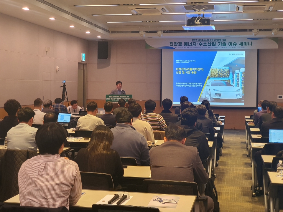 본 세미나는 두 개의 세션으로 나뉘어 진행됐다. 1부 순서인 ‘재생에너지·배터리’ 세션에서는 한국에너지공단의 신재생정책실 박강훈 총괄팀장이 ‘재생에너지 정책 현황 소개’를 발표했다. 이어서 한국전기연구원 차세대 전지연구센터의 하윤철 센터장이 ‘이차전지 기술 트렌드’를 주제로 글로벌 이차전지 기술 수준에 대해 설명했다.