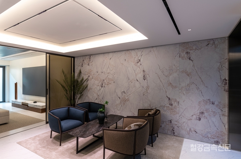복원력도 살렸다. 천연석은 파손 변형 시 딱 맞는 무늬 제품으로 대체하기 힘들었지만, 포스마블은 언제든지 맞춤형으로 제작·교체 가능하다. 광택감도 별도 장비 없이 물티슈 한 장이면 우아한 마블 무늬를 365일 유지할 수 있다.