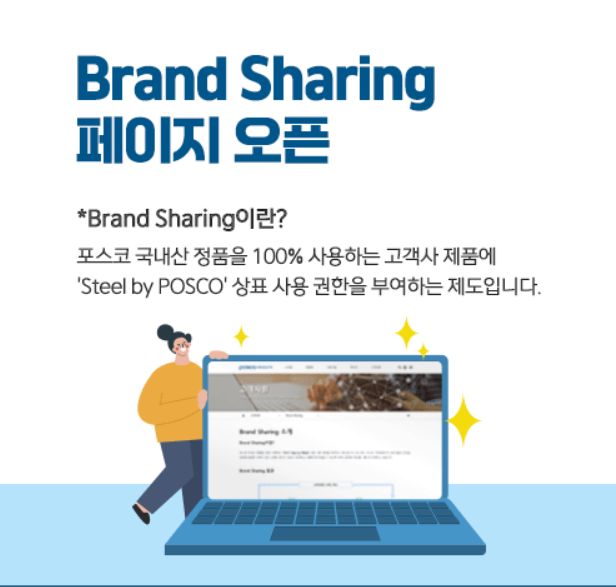 한편, 포스코는 중소 고객사들에 브랜드쉐어링 프로그램에 참여 기회를 언제나 열어두고 있다고 밝혔다. 특히 제품에 포스코 강재를 100% 사용하는 고객이라면 언제든 포스코와 브랜드쉐어링 협약 체결에 대해 상의할 수 있다고 설명했다.