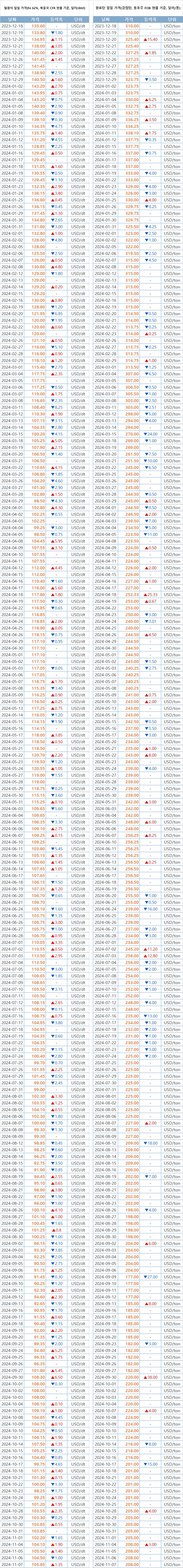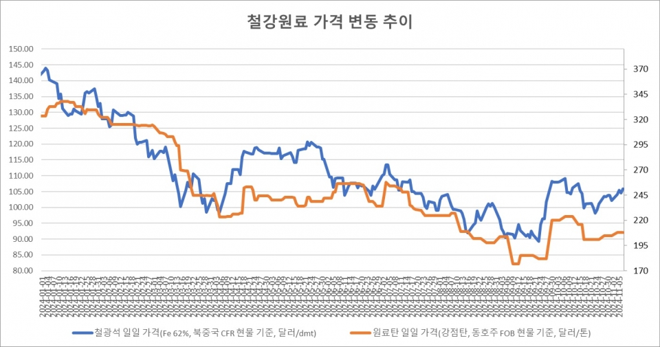 [표] 일일 철강원료 가격 동향 (11월 7일)