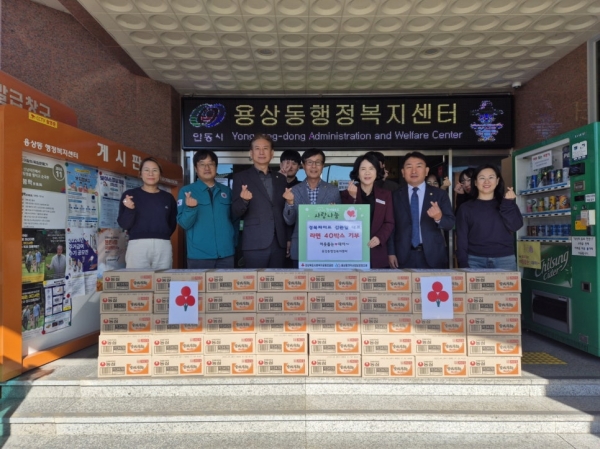 김완일 경북파이프 대는 8일 용상동행정복지센터(동장 변광희)를 찾아 관내 취약계층 주민을 위한 라면 40박스(70만 원 상당)를 기부했다.