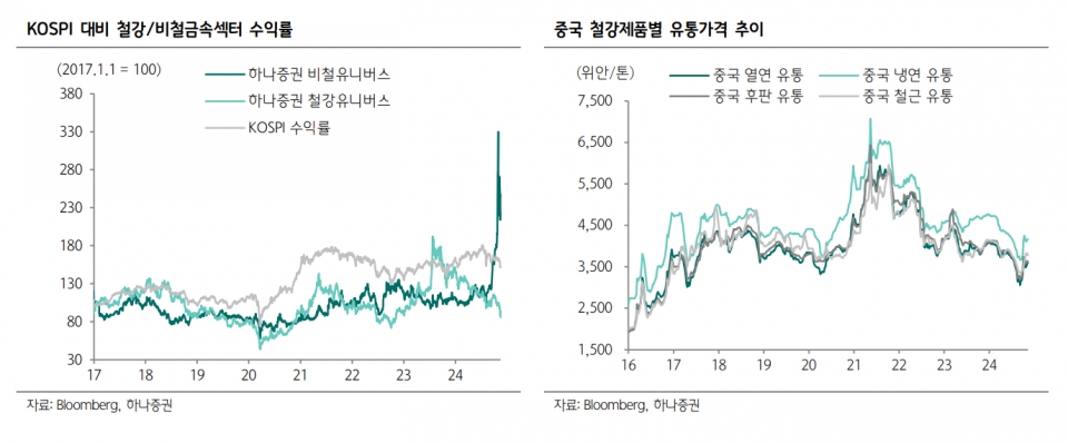 아울러 박성봉 연구원은 “국내 철강 시장의 경우 고로사들의 가격 인상 시도와 강달러 영향으로 열연 가격 2주 연속 상승했다”고 설명하면서도 포스코홀딩스와 현대제철, 세아베스틸지주 등 주요 철강사 주가는 하락한 상황임을 알렸다.