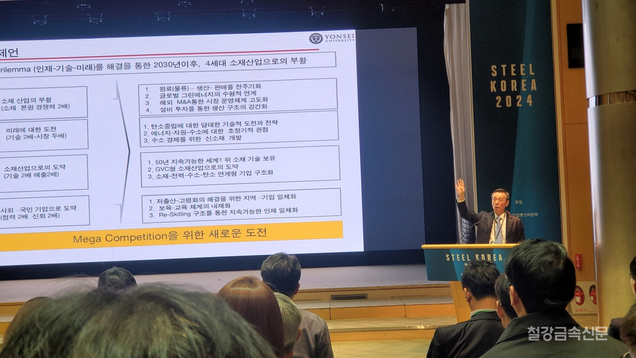 연세대학교 신소재공학과 민동준 명예특임교수가 ‘스틸코리아 2024’ 기조강연으로 ‘산업 전환 시대의 철강산업 경쟁력 강화 방안’을 발표했다. 특히 민동준 교수는 철강업계의 위기를 넘어서려면 문제의 본질을 제대로 바라보는 것이 중요하다고 강조했다.