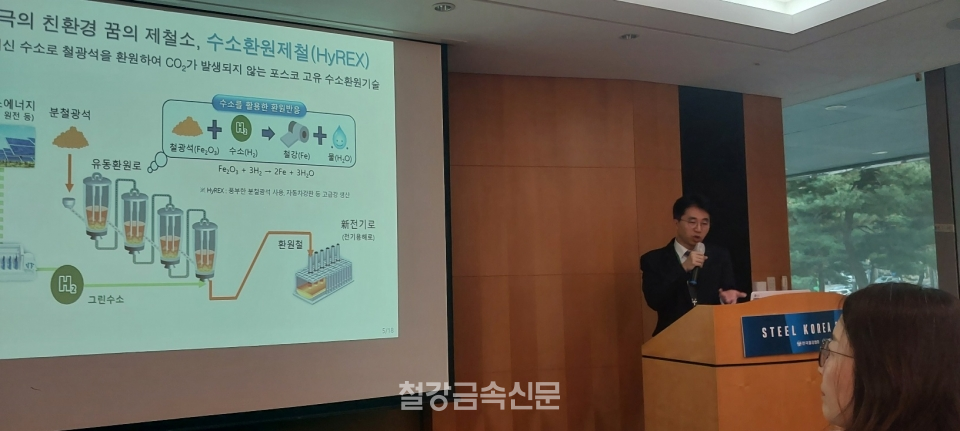 음광진 포스코홀딩스 리더는 25일 포스코센터에서 개최한 '스틸코리아'에서 '한국 철강의 경쟁력 있는 탄소중립 전환 방안'을 주제로 발표했다.