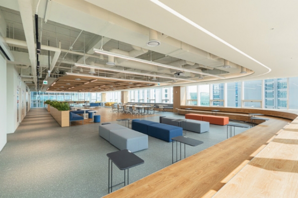 여기에 채광 및 업무 환경을 고려한 남향 배치로 곳곳에 자연채광을 확보하고 에너지 절감을 위해 다양한 노력을 기울였다. 이외에도 야양한 옥외테라스와 정원을 통해 9개의 친환경 입체적 외부공간을 마련헀다.