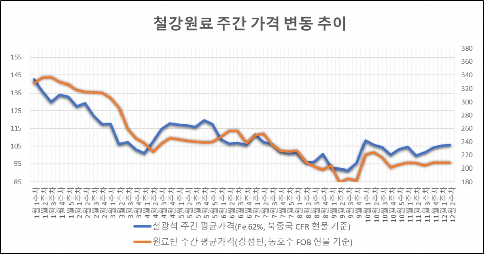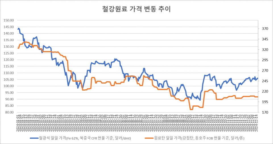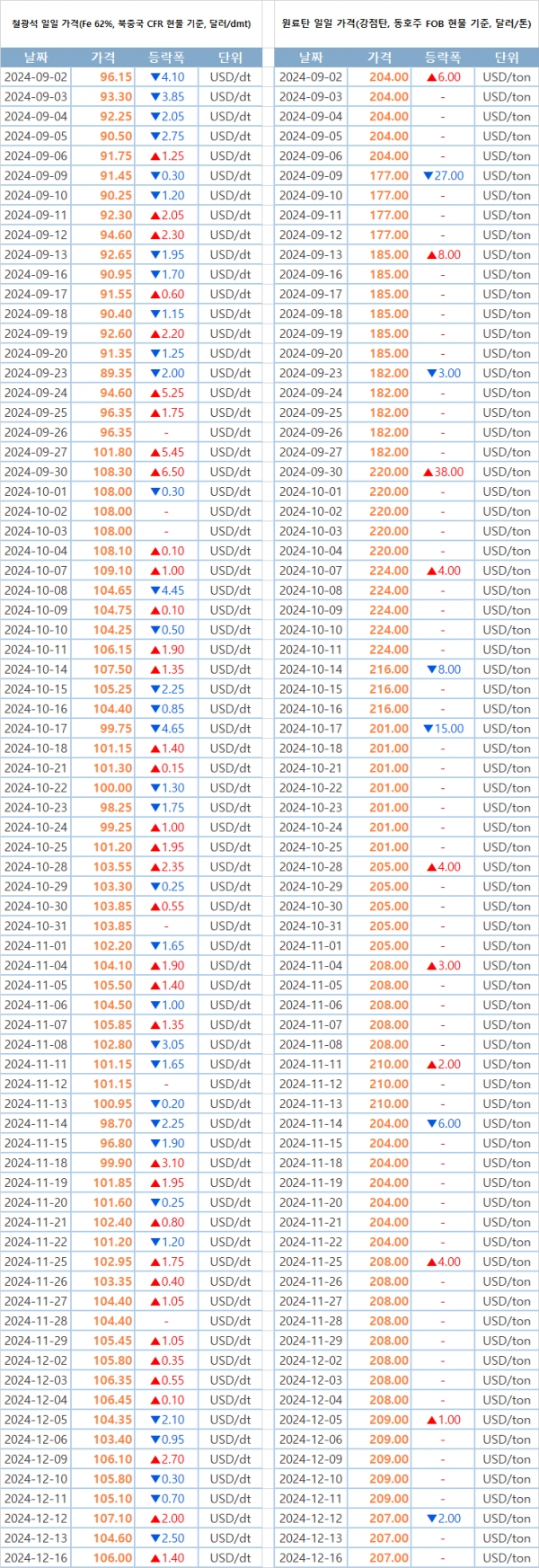 [표] 일일 철강원료 가격 동향(12월 16일)