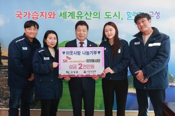 SK오션플랜트 띠앗봉사단이 경남 고성군에 이웃돕기 성금 2,000만원을 기탁했다.
