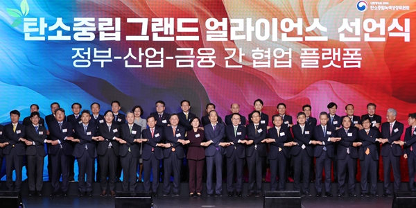 탄녹위는 23일, 서울 그랜드 하얏트 호텔에서 탄소중립 그랜드 얼라이언스 선언식 및 컨퍼런스를 열었다. 이번 행사는 산업계와 금융계가 손을 맞잡고 협력하여 ‘산업과 금융의 대연합을 통한 탄소중립 녹색강국 실현’ 의지를 표명하고자 마련됐다.