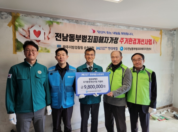 현대제철 순천공장은 지난 2013년부터 범죄피해자 지원센터 주관의 집수리 봉사 활동을 전개해왔다. 집수리에 필요한 비용(980만원)을 후원하고 주거환경개선이 필요한 범죄피해자 가정에 도배, 장판교체, 외벽 도색등 집수 봉사활동 적극 참여하고 있다.