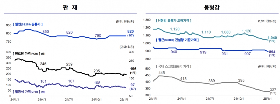 “현재 주요 철강 원재료 가격 약세...봉형강류는 건설 부진 지속 더해져 가격 약세”