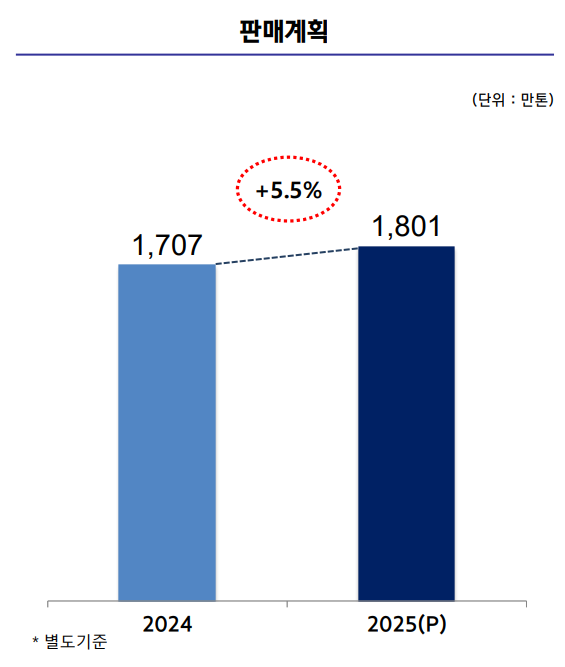 올해 회사의 제품 판매 계획에 대해선 지난해 판매량 대비 5.5% 증가한 1,801만 톤(별도 기준)을 산정했다. 현대제철은 올해 경영방침이 『‘지속성장’이 가능한 ‘친환경’ 철강사』 라며 3대 기본 지침으로 ‘수익 중심 사업체계 강화’, ‘탄소중립 실행 효율성 제고’, ‘미래 성장기반 확보’ 등을 꼽았다.