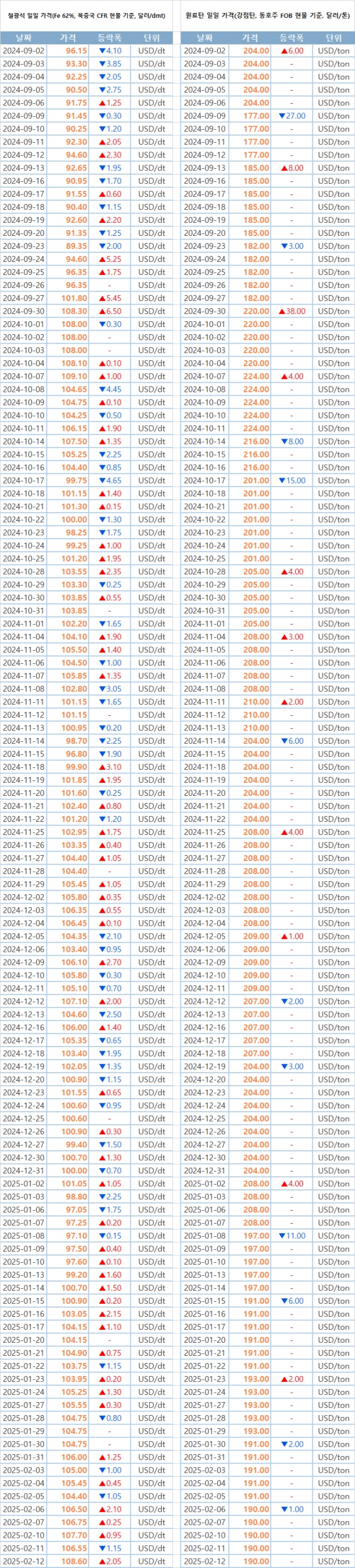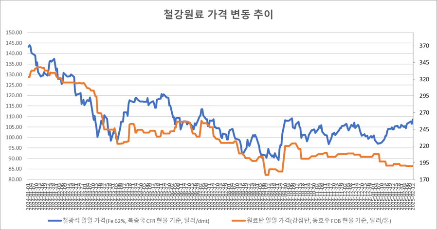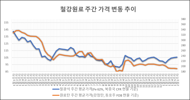 키워드 #철광석 #원료탄 이사무엘 기자 smlee@snmnews.com 다른 기사 보기 관련기사 춘절 이후 中 열연강판 수출價 약보합 권오준 전 포스코 회장, “철은 금속 중 왕” 저작권자 © 철강금속신문 무단전재 및 재배포 금지