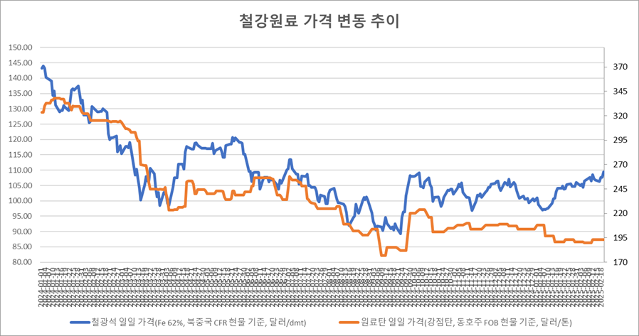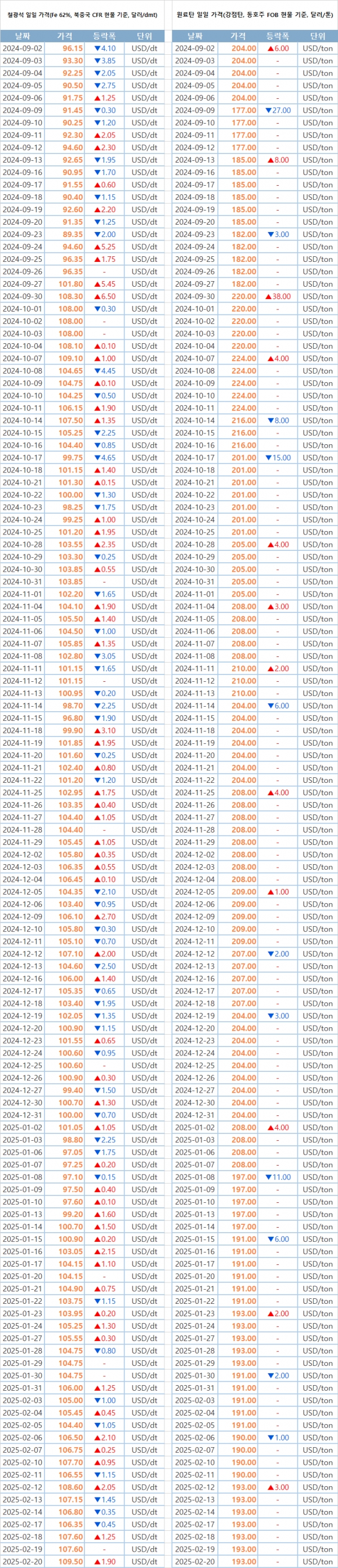[표] 일일 철강 원료 가격 동향(2월 20일)