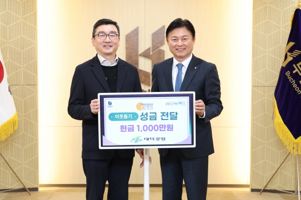 조용익 부천시장은 “매년 취약계층을 위한 사업에 관심을 가지고 꾸준히 후원해 주시는 ㈜대덕강업에 감사드린다”며 “소중한 후원금이 어려운 이웃들을 위해 적재적소에 지원될 수 있도록 부천시도 최선을 다하겠다”고 말했다.