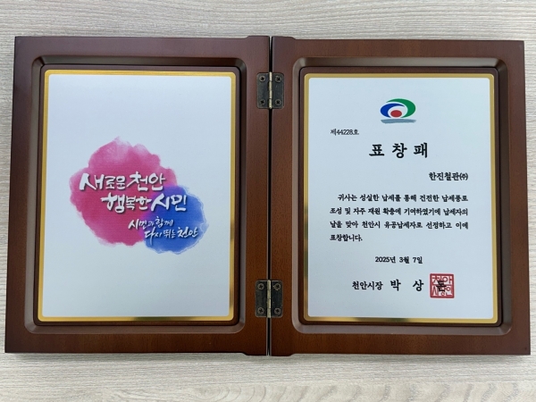 구조관 전문 제조업체 한진철관(대표 이형석)이 ‘2025 천안시 유공납세자 시상식’에서 유공납세자로 선정되어 인증패를 수상했다. 이는 지방세를 성실히 납부함은 물론, 사회적 가치를 실현하는 모범 기업에게만 주어지는 영예다.