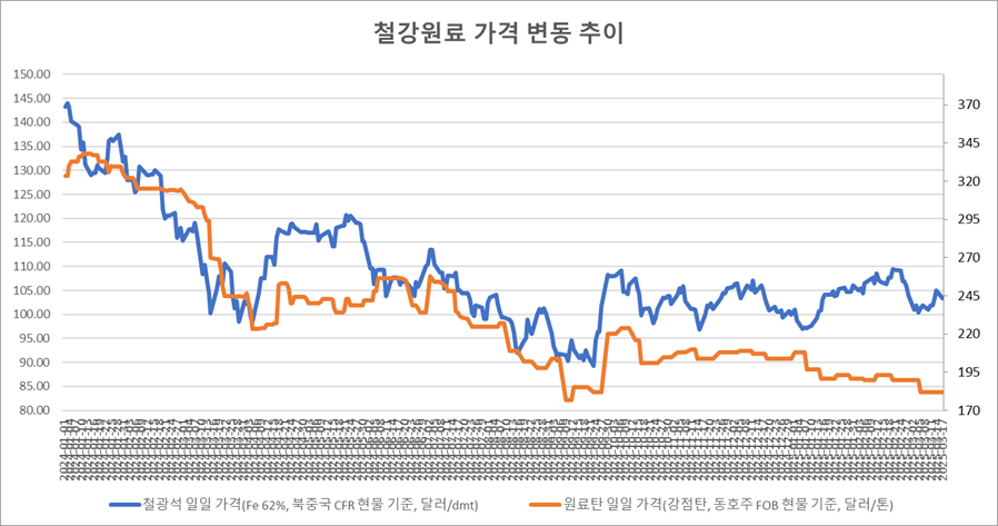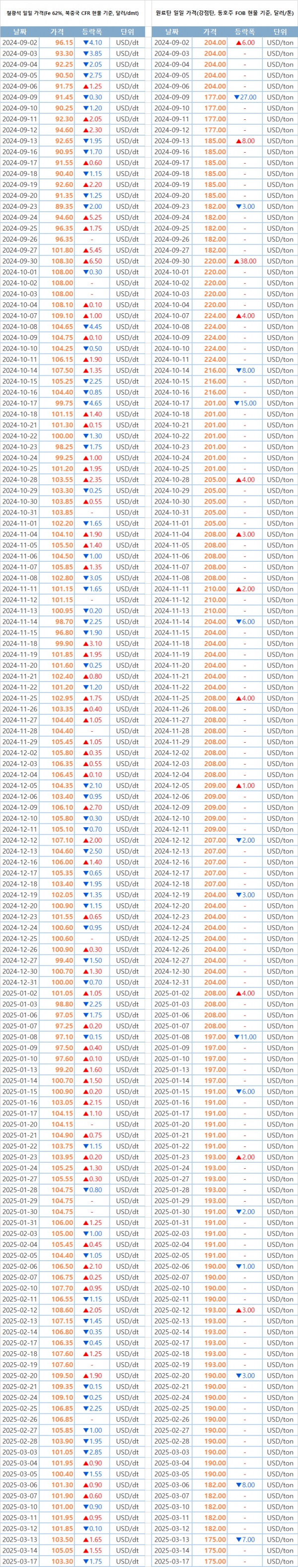 [표] 일일 철강 원료 가격 동향(3월 17일)