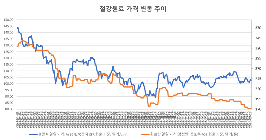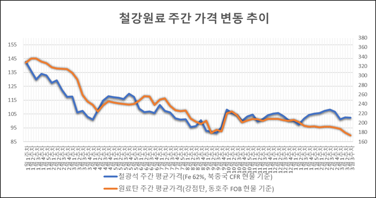 키워드 #철광석 #원료탄 이사무엘 기자 smlee@snmnews.com 다른 기사 보기 관련기사 가격 앞세운 중국산 열연강판, 국내 시장 압박 ‘심화’ 현대제철, ‘비상경영 모드’ 가동…50세 이상 전 직원 희망퇴직 접수 저작권자 © 철강금속신문 무단전재 및 재배포 금지
