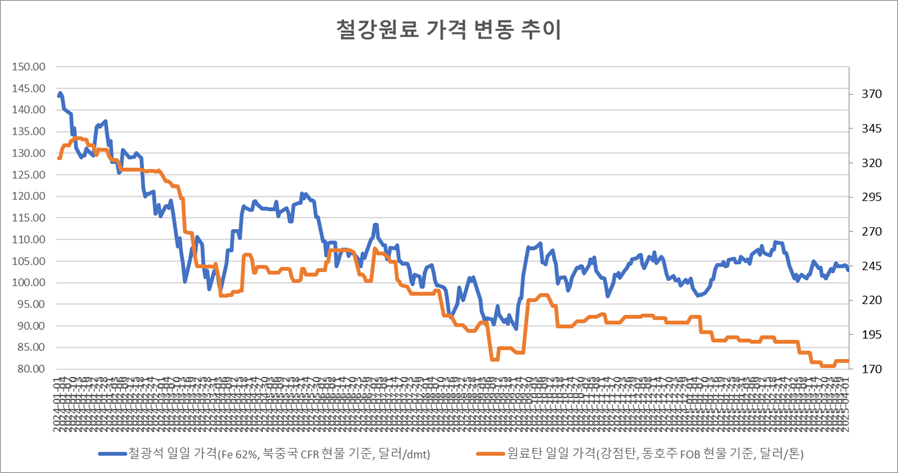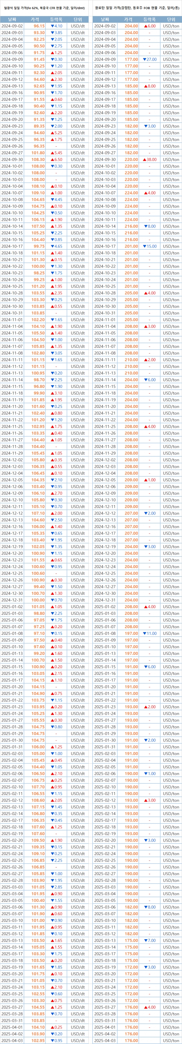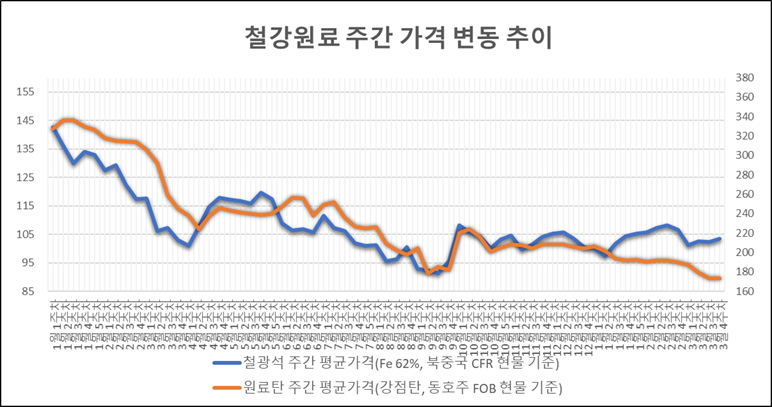 [표] 일일 철강 원료 가격 동향(4월 3일)