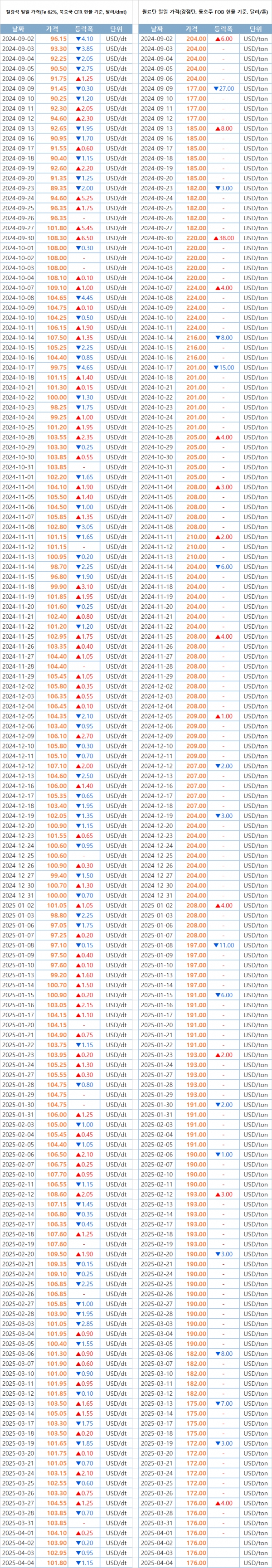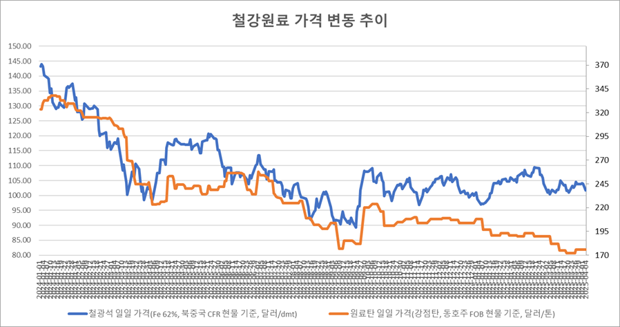 [표] 일일 철강 원료 가격 동향(4월 4일)