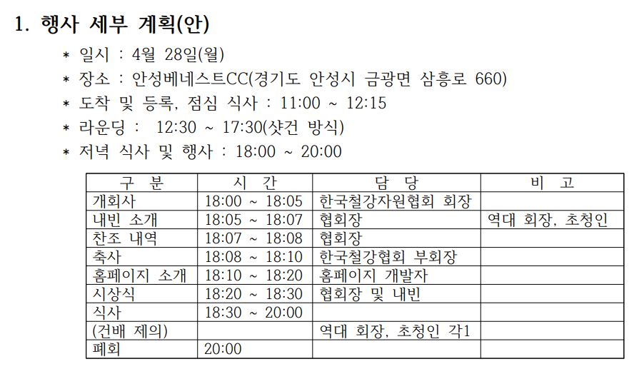 28일 골프대회 세부계획·홈페이지 리뉴얼 상황 등 점검