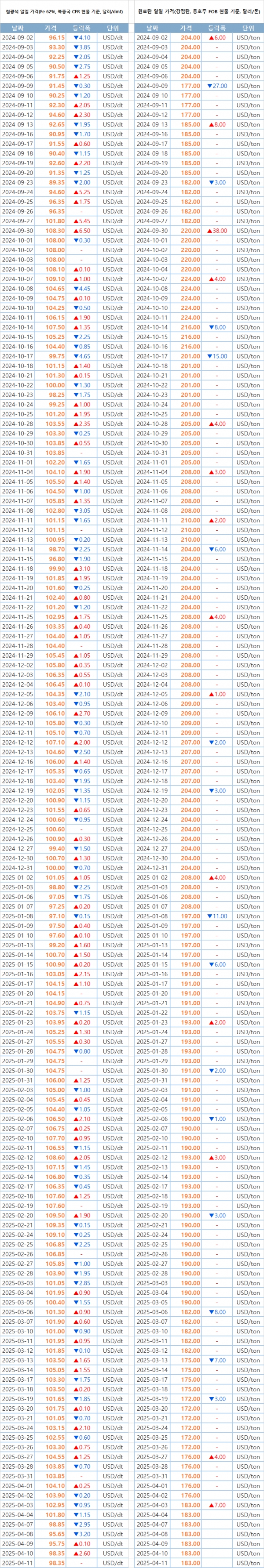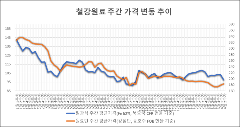 [표] 일일 철강 원료 가격 동향(4월 11일)