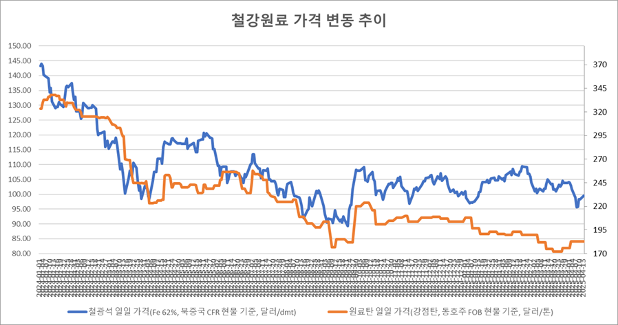 [표] 일일 철강 원료 가격 동향(4월 14일)