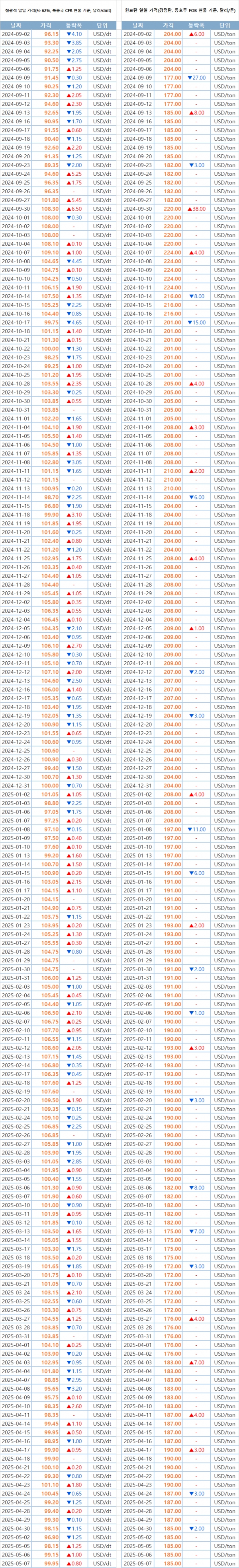 [표] 일일 철강 원료 가격 동향(5월 7일)