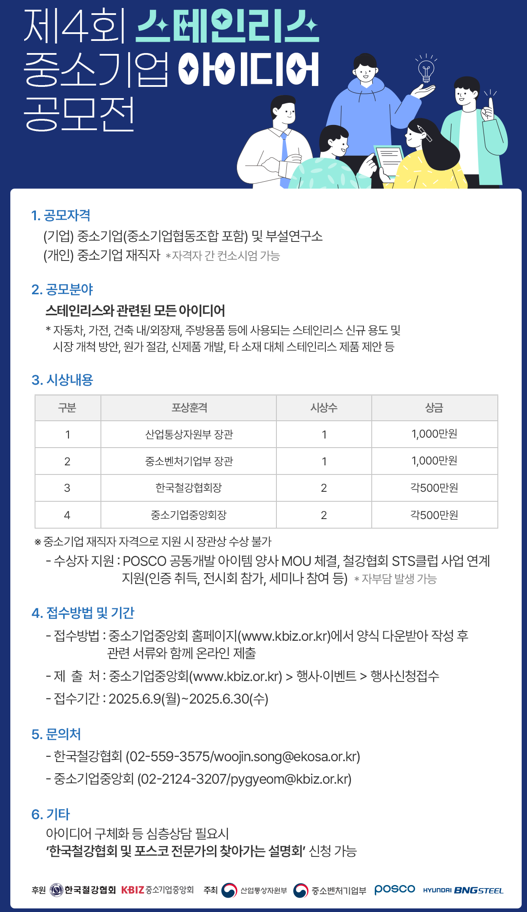 이번 공모전은 2024년 개최에 이어 4번째로 개최하는 것으로 한국철강협회와 중소기업중앙회가 매년 중소기업의 다양한 아이디어를 발굴하고, 상용화 할 수 있도록 지원하기 위해 마련되었다.