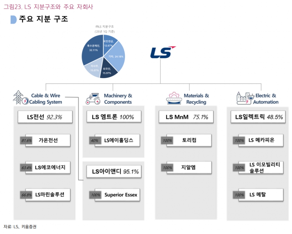 이종현 연구원은 “LS의 최근 주가 상승에도 불구하고 벨루에이션 부담은 크지 않다”며 “새 정부의 주식시장 활성화 정책 등을 감안하면 여전히 상승 여력은 충분하다고 판단된다”고 말했다. 이는 6월 중순 기준 약 14.5%에 달하는 LS 자사주 보유가 새 정부의 ‘자사주 소각 의무화’ 추진 가능성에 영향을 받을 것이란 의미로 풀이된다.