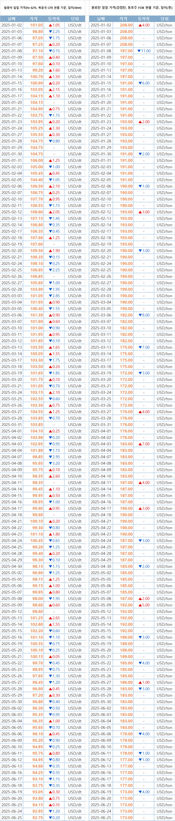 키워드 #철광석 #원료탄 이사무엘 기자 smlee@snmnews.com 다른 기사 보기 관련기사 이렘, 임시 주총 일정 변경 및 사업목적 추가 예정 산화주석 기반 페로브스카이트 소재 개발 생기원, 극저온 특수소재 맞춤형 ‘레이저-아크 하이브리드 용접기술’ 개발 5월 세계 조강 생산 전년比 3.8% 감소 EU 금속제조업계, 수주 내 스크랩 수출 제한 조치 요청 저작권자 © 철강금속신문 무단전재 및 재배포 금지