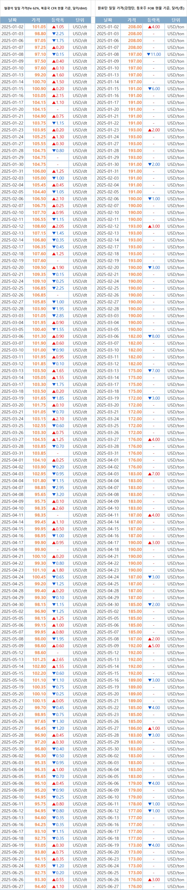 키워드 #철광석 #원료탄 이사무엘 기자 smlee@snmnews.com 다른 기사 보기 관련기사 동국제강, 안전환경 관리 상향 평준화 나선다 “강철보다 강한 안전관리 필요”…고용부, 6대 철강사와 간담회 ‘공기질도 상생으로’…포스코, 중소기업 손잡고 환경 챙긴다 침 맞고 부항도 받는다?…포스코, 사내 ‘한방 복지’ 시동 재료硏, 일본 국립재료과학연구원(NIMS)과 업무협약 체결 현대제철, 가족과 함께하는 탄소중립 체험…“일상 속 실천에서 시작합니다” 멈칫한 포항 철강엔진…4월 생산 9.9%↓, 수출도 주춤 中 열연, 3,200위안 다시 붕괴…6월 가격 반등 실패로 마감 BIS부터 AD까지…철강 수출 막는 ‘다층 방어막’에 업계 긴장 83만 원 회복한 열연…“몸 풀었지만, 뛸 준비는 아직” “무역장벽, 알고 뚫자”…美 관세조치 대응법 한눈에 저작권자 © 철강금속신문 무단전재 및 재배포 금지