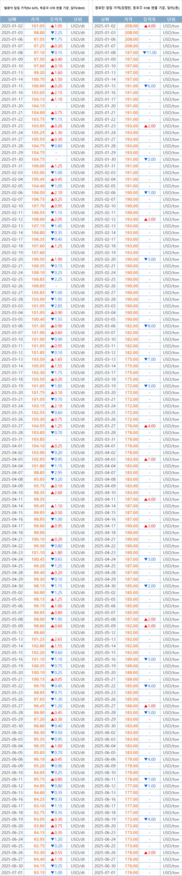 키워드 #철광석 #원료탄 이사무엘 기자 smlee@snmnews.com 다른 기사 보기 관련기사 日 관동 전기로 조강, 9개월 연속 전년比 감소 전망 동국제강 포항, 철스크랩價 인하 예고…속도는 '여유' 미국 열연價, 다시 940달러…‘관세 반사효과’ 본격화 브라질, 중국 스테인리스 열연강판 반덤핑 조사 단가 회복 더디다…6월 철강 수출액, 8.0% 감소 저작권자 © 철강금속신문 무단전재 및 재배포 금지