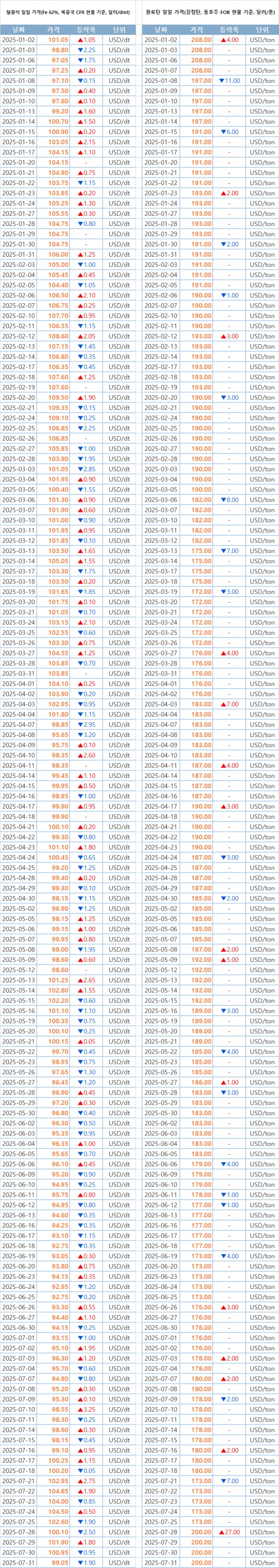 [표] 일일 철강 원료 가격 동향(7월 31일)