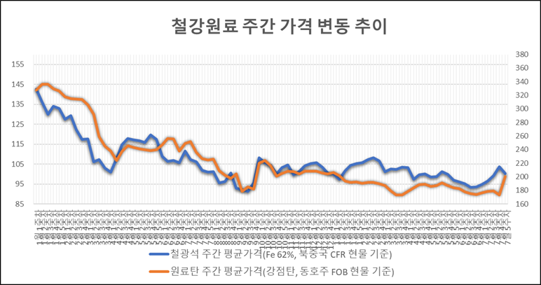 키워드 #철광석 #원료탄 이사무엘 기자 smlee@snmnews.com 다른 기사 보기 관련기사 철강 수출, 3개월째 감소…車·조선은 선전, 가전은 역풍 김기문 중기중앙회장, 日 전국중소기업단체중앙회 방문 '기습 폭우에 폭염'까지 구조관 판매 주춤 경인·중부권서 '포문'…철스크랩價 석 달 만에 반등 특수강봉강, 올해 국내 수요 팬데믹 이후 최저 전망 [이슈] 반덤핑 예고에 쏟아진 ‘막차 열연’…7월 수입 31만 톤 폭증 저작권자 © 철강금속신문 무단전재 및 재배포 금지