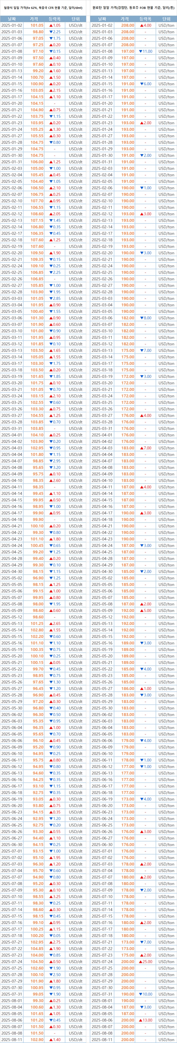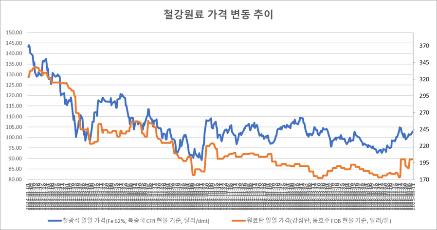 [표] 일일 철강 원료 가격 동향(8월 11일)